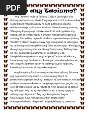 Saan nagmula ang taoismo. Ang salita ay nangangahulugan na daan o lagusan Hindi kailanman nagkaisa ang Taoismo bilang isang relihiyon. Human translations with examples. Ang mga paghihirap pagdurusa sakit at problema ng tao ay resulta ng hindi pagsunod sa paraan ng kalikasan.